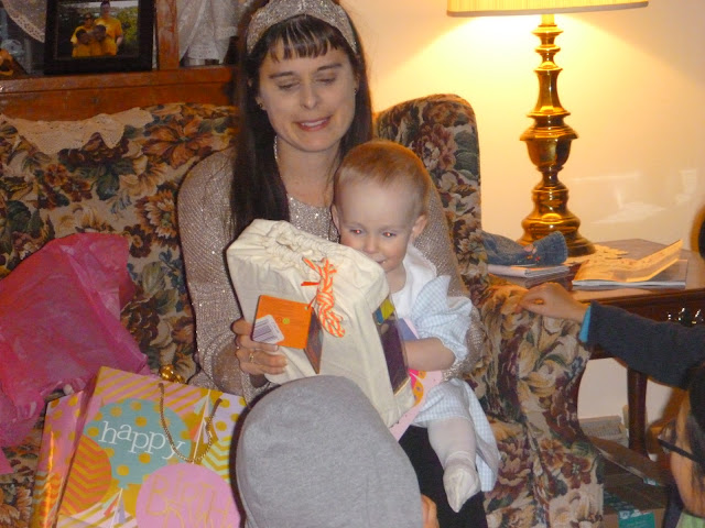 These photos would never capture who she really is or the wonder of her year with us. They could never really show how her face beamed and lip quivered when everyone sang to her. How she was overcome with emotion at seeing all her loved ones gathered just for her. A photograph would never tell the story of how she took each card and "read" it, sliding her finger under the words, pointing out each design and print or how she hugged those cards to her heart and smiled at each family member who had given it to her. That, my dear readers, is pure joy!